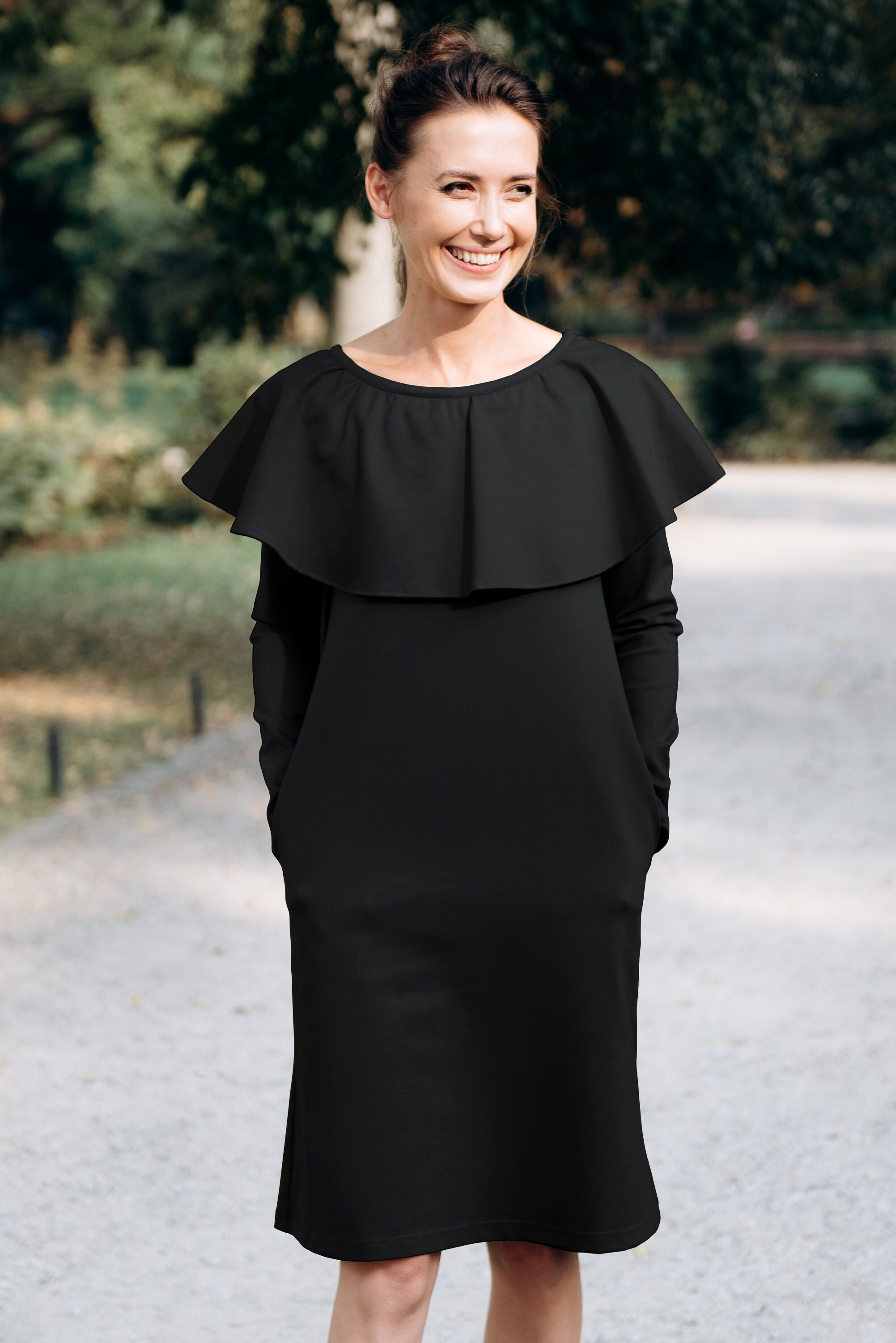 Black Cocktail Dress Elegant Dress Modest Dress Pocket Etsy
